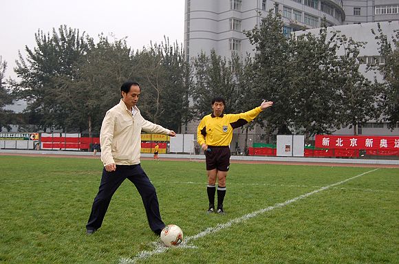 北京市政府辦公廳領(lǐng)導(dǎo)為球賽開球。