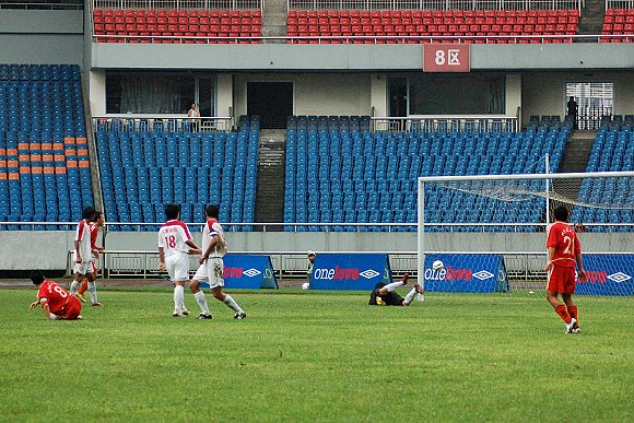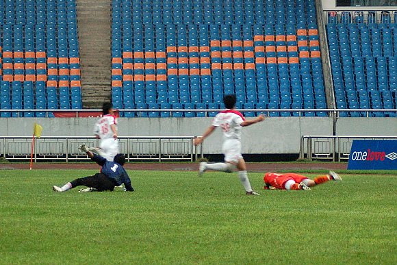 此時對方球員已經(jīng)毫無斗志,幾次稍有威脅的射門也都被我方守門員王毅輕松化解。