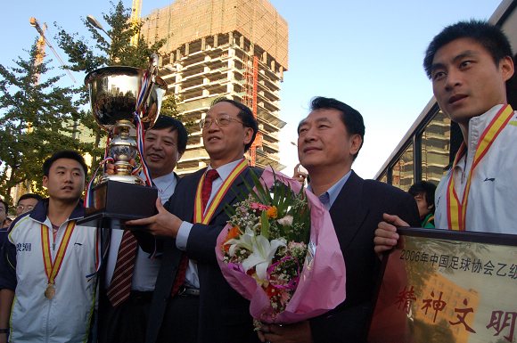 11月2日,北京理工大學大學學生足球隊經(jīng)過激烈拼搏,以3:0戰(zhàn)勝哈爾濱毅騰隊,榮獲2006年中國足協(xié)乙級聯(lián)賽冠軍和精神文明隊,球隊總教練金志揚榮獲最佳教練獎。在這之前,我校學生足球隊以二回合總比分9:8的總比分戰(zhàn)勝天津火車頭隊成功晉級中甲。