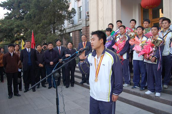 金志揚總教練看到這種熱烈的場面非常激動,他代表全體教練員、全體隊員對學校領導和全校師生對足球隊的正確領導和殷切關懷表示感謝,他表示一定要按照學校領導的要求和全體師生的希望,面對挑戰(zhàn)勇往直前。