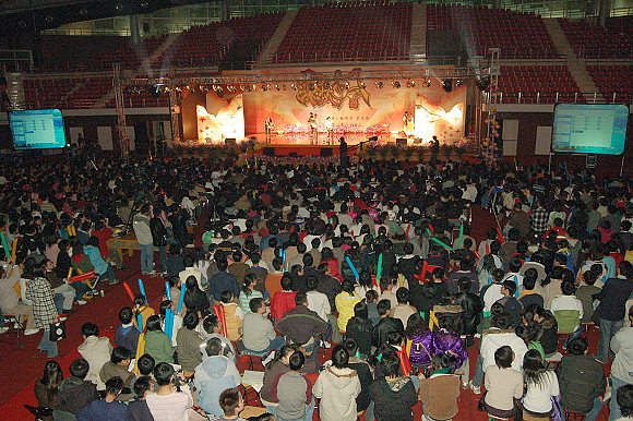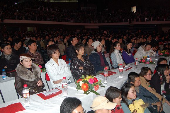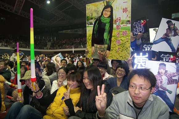臺上選手的精彩表現,感染了臺下每一位觀眾。他們完全將自己的情緒同選手們連同在一起。手中的熒光棒隨著音符輕輕擺動,一塊塊寫滿祝福的標語牌在會場中搖動,他們毫不吝惜自己的掌聲,為選手們加油鼓勁,展示了理工人特有的熱情。