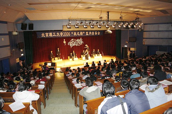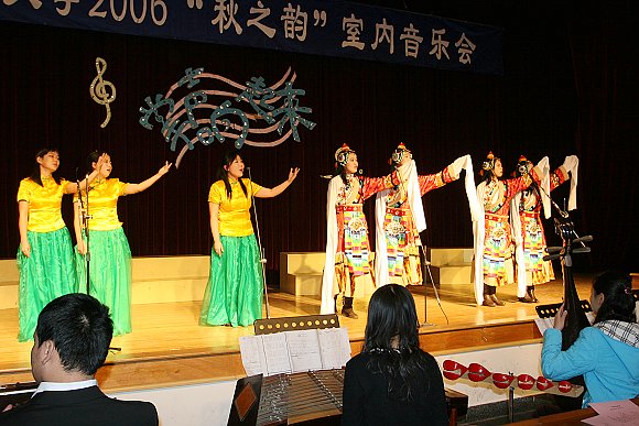 2006年11月27日,一個靜謐的初冬之夜。大學生藝術團合唱團的同學們在中心教學樓報告廳為全校師生獻上了一場精心準備的“秋之韻——掌聲響起來”合唱專場音樂會。