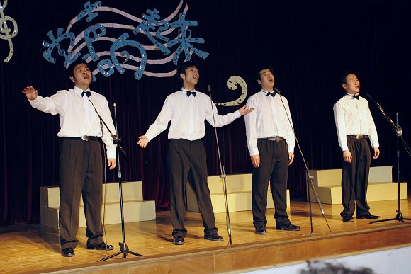 合唱團04級的張開量,05級的岳崧,06級的錢星辰都給大家帶來了精彩的演唱。他們曾在學校深秋歌會中取得過冠亞軍的好成績。同時,他們還跟大家分享了在合唱團的快樂生活。