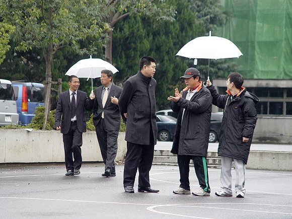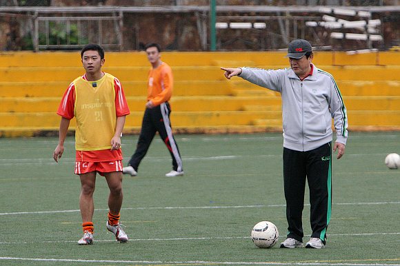 雨勢時強時弱,總教練金志揚教授在與接待人員表示,訓練照常進行。