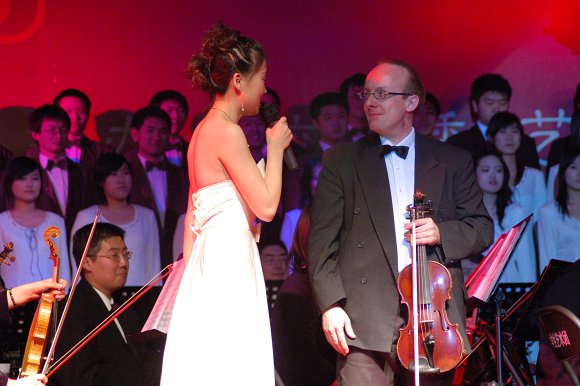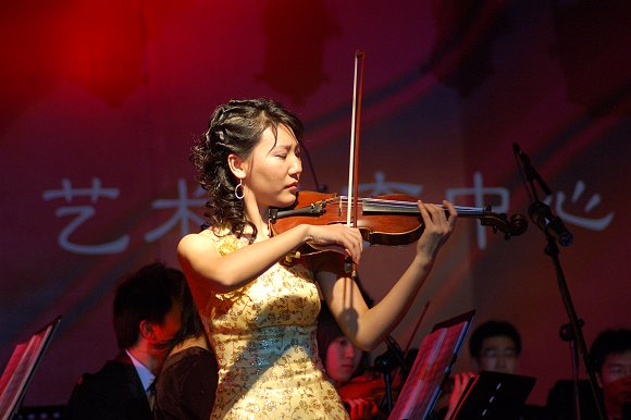 優(yōu)美的小提琴協(xié)奏曲《梁祝》令觀眾如癡如醉。
