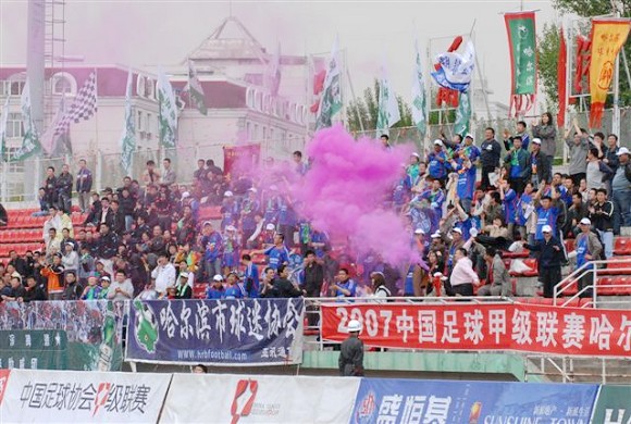 哈爾濱球迷在慶祝進球