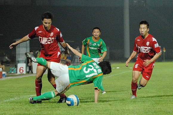 “實力不濟、經驗不足,輸球太正常不過了。”金志揚的話似乎有些先知先覺。重慶力帆與北理工的比賽被安排在晚場舉行,由于重慶地區氣候悶熱,再加上首次參加晚場比賽,學生軍的小伙子們多少有些不適應。他們在上、下半時分別被力帆隊外援桑托斯、范冬青打入兩球。不過輸球的老金賽后卻很自豪:“一次通過定位球,一次通過界外球,力帆兩個進球都是利用我們經驗不足,但是隊員們自始至終都沒有放棄過爭取破門。最后力帆隊兩名隊員抽筋了,我們沒有一個抽筋啊。魏新賽后帶頭向我們致敬。”