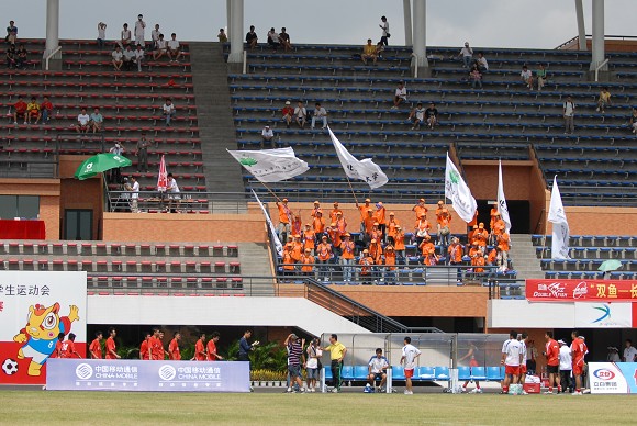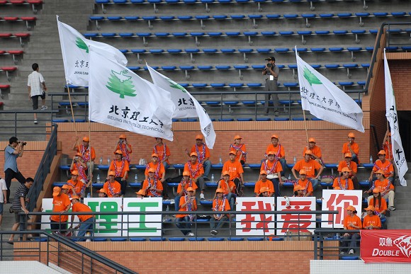北京理工大學(xué)珠海學(xué)院的同學(xué)們專程從珠海趕來(lái)為母校足球隊(duì)加油助威!