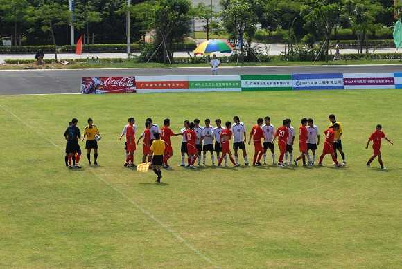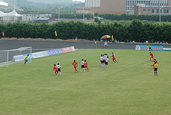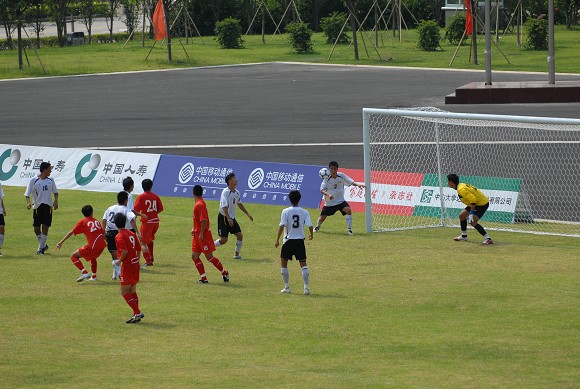 在同屬一個半區的B組最后一輪比賽中,河南隊(白色隊伍)以1:1逼平上屆大運會冠軍上海隊,以一勝兩平積5分的成績與兩勝一平積7分的山西隊攜手出線,而上海隊則以一勝一平積4分的成績慘遭淘汰。
