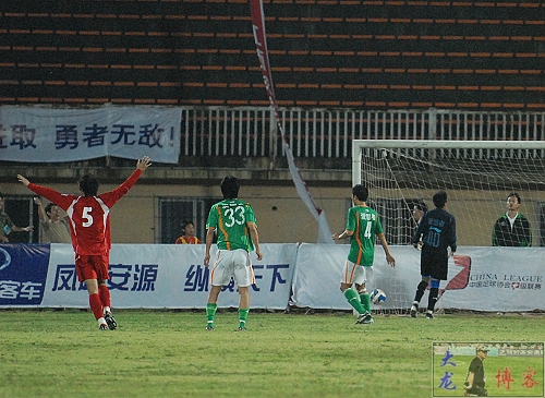 李曉的變陣迅速收到奇效,新上場的隊員按照教練的布置,利用順風球的優勢,采用遠射或直接吊門進行多次進攻,第69分鐘,八一隊前場任意球,八一隊員把球吊到門前,傷愈復出的顧中慶轉身倒地勾射,北理工守門員孫程站位略微靠前,皮球越過頭頂吊入網窩,比分變成了1比1!