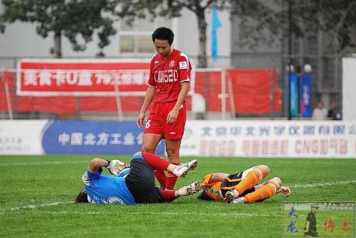 開場后愛國者隊排出了穩守反擊的戰術,第7分鐘,32號新人曹亞非禁區外25米處遠射完成第一腳射門,可惜被后衛有身體擋出沒有造成太大威脅。第13分鐘,愛國者隊右側進攻,韓國外援金俊值45度妙傳,被禁區內的力帆隊員飛身頂出。