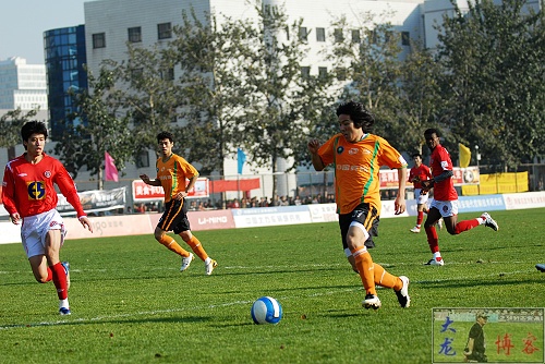 本場比賽沖超成功的成都謝聯隊并沒有派出全部主力陣容,可見主教練黎兵還是有所保留。但主場作戰的北理工擺出了一副與客隊對攻的架勢。開場后,北理工雖然在實力上不如對手,但球員的精神面貌和比賽作風卻毫不示弱。