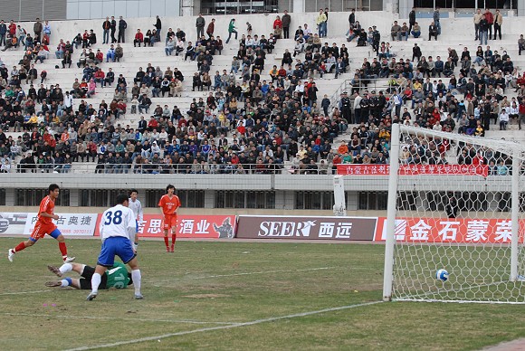之后,北理工連續客場作戰,遠赴塞外青城與呼和浩特隊交手,當時的呼和浩特隊作為內蒙古的首支中甲球隊,雖然非本地子弟兵,但也全城上下熱血沸騰,從自治區領導到數萬球迷無不期待著一場勝利,某著名國有企業甚至許下了贏球就考慮冠名贊助的諾言,于是呼和浩特隊這支構成復雜的“多省部隊”上下齊心協力,一番狂轟亂炸,竟然以三球領先,但北理工又是最后時刻的一個入球再次證明了自己的實力并非任人蹂躪。盡管呼和浩特隊取得了整個賽季的唯一一場勝利,北理工在兩連敗后也似乎陷入了實力不濟的灰色境地,但呼和浩特隊直到出現了“罷賽”事件也并沒有得到那家企業的巨額贊助,贏球獎金也遲遲沒有到位,這也許是企業的眼光比較長遠和犀利,但也許正是部分企業的部分“食言”和獎金的遲遲不到位,導致了呼和浩特隊的逐步衰落,聯賽第八輪以0:7輸給廣州就已經發出了預警信號,然后在更換主教練繼而更換總經理之后完全崩潰。