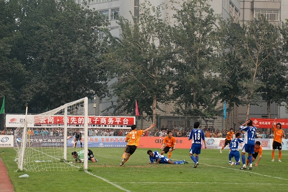同樣在客場與哈爾濱毅騰的比賽中,面對這個去年曾經三次交手兩勝一平的“青年軍”,北理工在占盡場上優勢的情況下,卻由于場地泥濘等原因再次輸在一個任意球下,而這個任意球的位置、入球方式與上一場的那個致命任意球幾乎有著驚人的相似,難怪金指在賽后對隊員們在同一個“坑”里跌倒而大發雷霆。