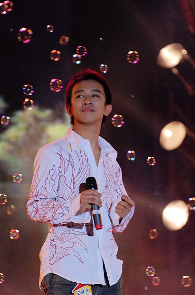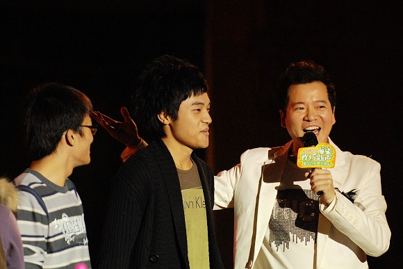 cctv“夢(mèng)想中國(guó)”銀碟獎(jiǎng)得主海明威閃亮登場(chǎng),引爆尖叫連連,場(chǎng)下熒光棒隨節(jié)奏飄擺。