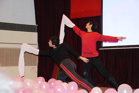 來自北京舞蹈學(xué)院的學(xué)生表演的精彩舞蹈“詩樂舞·梁祝”博得師生們陣陣掌聲。