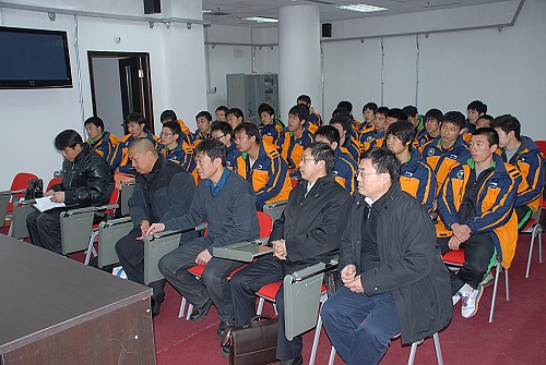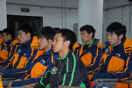 曹限東主教練首先匯報了球隊在韓國的冬訓情況,在韓國的22個日子里,球隊共進行了20場教學比賽,基本上是以賽代練,與韓國的諸多大學生隊伍和少數職業隊伍進行了比賽,并取得了7勝6平7負的成績。在這些比賽中,我們既看到了與對方的差距,同時也找到了自己存在的問題,隨著隊伍的不斷調整,球隊的整體水平也在不斷提高,同時球隊也為新賽季的體能儲備打下了良好的基礎。
