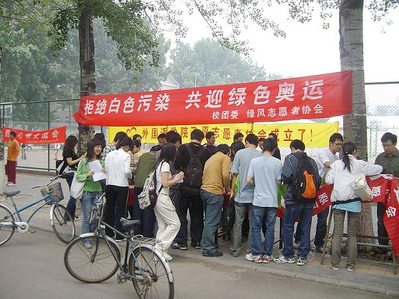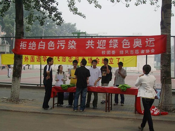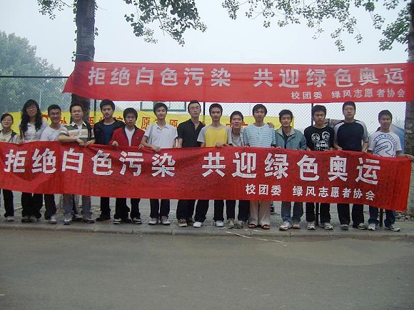 距離奧運會只有八十幾天,全國人民都在緊鑼密鼓的準備著,共同迎接“綠色奧運”的到來。作為一個志愿者服務性質的團體,我們綠風志愿者協會為2008北京奧運成功舉辦做著自己的努力。2008年5月16日,綠風志愿者協會在中關村校區組織開展了“拒絕白色污染 共迎綠色奧運”的活動。