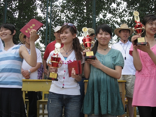 女隊在第一場迎戰(zhàn)與自己實力相當(dāng)?shù)谋本┩鈬Z大學(xué)的時候,顯得游刃有余,始終掌握場上的主動權(quán),并且贏得的比賽,進(jìn)入了女子組的決賽。在決賽中的對手為服裝學(xué)院。也許是因為興奮過早,或者天氣影響的估計不足的關(guān)系,女隊隊員失誤明顯增多,面對實力不勝自己的服裝學(xué)院,女隊似乎失去了制勝的方法,反而自己在一傳,發(fā)球,串聯(lián)上找不到感覺,一直送分給對手,最終遺憾的負(fù)于對手,獲得第二名。這已經(jīng)是女隊在此項賽事中獲得的最好名次。