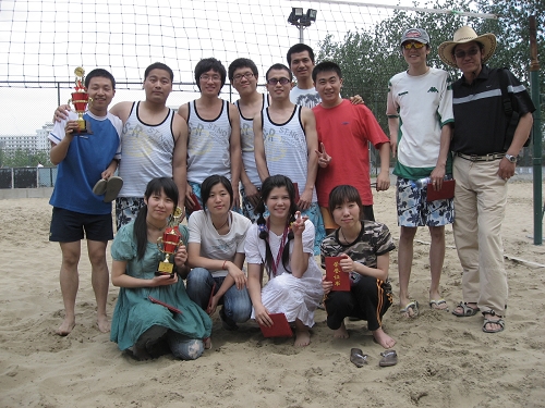 2008年5月31日至6月1日,一年一度的北京市高校沙灘排球業(yè)余組比賽如期的在清華大學(xué)沙灘排球場進(jìn)行。校排球協(xié)會組織了男女各6名隊員代表北京理工大學(xué)參加此項比賽。最終,北京理工大學(xué)排球隊在業(yè)余組的比賽中獲得了男子第三名,女子第二名的優(yōu)異成績。