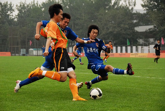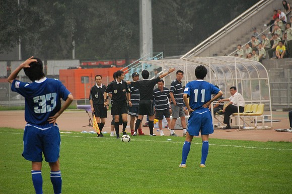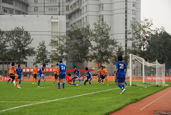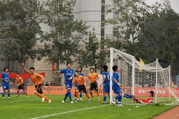 兩隊在開場后就各自完成了一次有威脅的進攻,只是北理工抓住了一次機會。但從開場僅15分鐘雙方就各自有3個角球的機會來看,由于兩隊都排出了3后衛的進攻陣型,本場比賽勢必會成為一場對攻戰。
