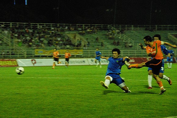 第18分鐘北京理工在禁區(qū)弧附近犯規(guī),九方隊(duì)獲得一個(gè)位置很好的任意球,霍頓主罰打飛.