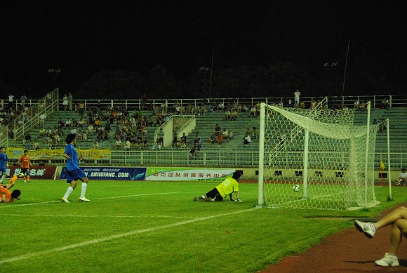 第39分鐘北京理工禁區(qū)突破直接面對(duì)門(mén)將射門(mén)被九方隊(duì)守門(mén)員歐亞奮力撲出,九方隊(duì)躲過(guò)一劫。上半場(chǎng)九方隊(duì)?wèi){借霍頓的進(jìn)球1:0領(lǐng)先。