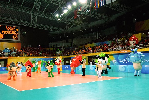 當15個可愛的福娃活靈活現的出現在現場時,那活潑俏皮的模樣逗樂了每一個人。他們揮舞著雙手,向觀眾致意“北京歡迎您”。整個表演贏得了大家的陣陣掌聲和歡呼聲,激情熱舞中,傳統民族風情服飾與中國古典音樂,青春與少年勾勒出了一幅盛世中國激情迎奧運,我們正年輕的史詩畫卷!