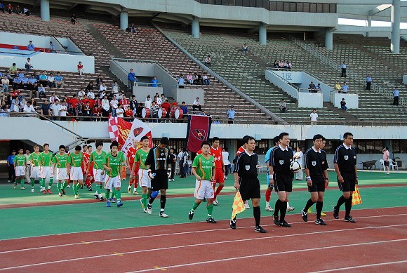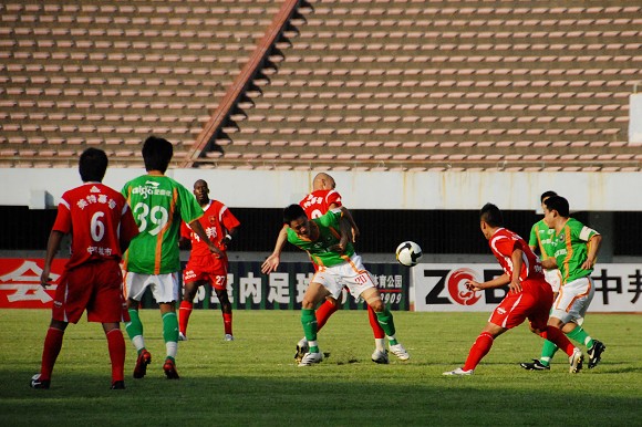 賽前熱身時,主場觀眾唱起生日歌,獻給今天生日且此前兩輪都有進球的“小和尚”詹可強,詹可強也表示會盡全力奉獻進球為自己和本輪停賽的李丹的共同生日慶生。比賽剛開始,雙方都不急于進攻,大多都是試探性的傳球,都沒形成射門。
