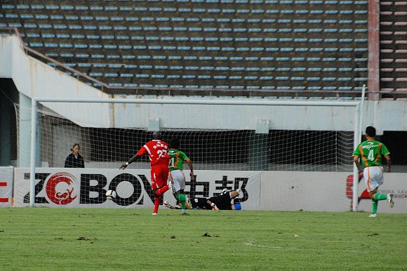 還是主場作戰的無錫中邦隊首先找到感覺,比賽進行到第13分鐘,受到球迷祝福的詹可強禁區前沿得球后直接遠射,皮球碰了一下防守隊員折射入網,壽星用進球同全場球迷慶祝自己的26歲生日。