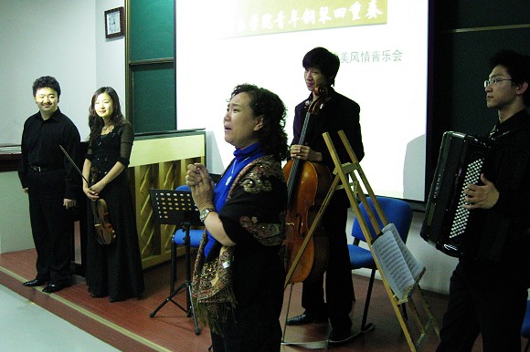 音樂會接近尾聲時,與會者饒有興趣的與演員共同演唱《茉莉花》、《同一首歌》,把晚會推向了高潮。有200余名同學觀賞了這場講座式音樂會。