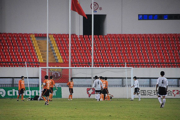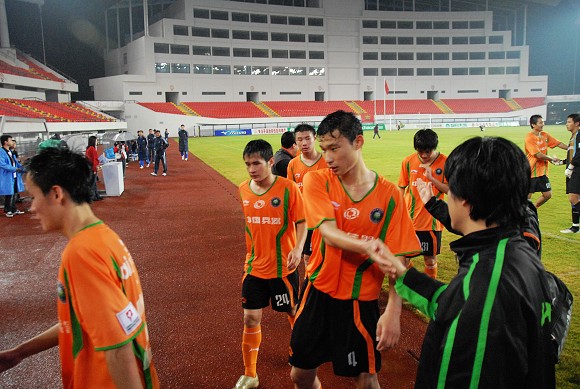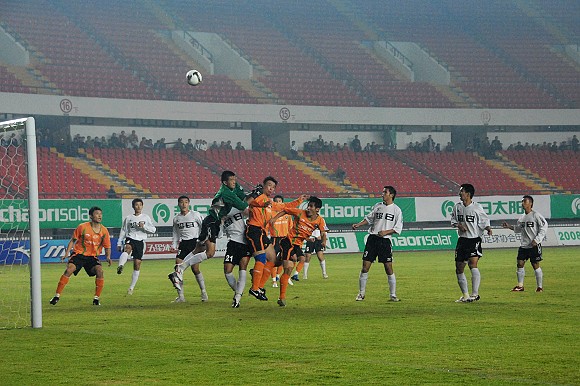 北京時(shí)間10月25日19點(diǎn)45分,已經(jīng)下了一整天的淅淅瀝瀝的小雨一直還在下,2008年中甲第23輪一場焦點(diǎn)大戰(zhàn)在上海金山足球場打響,上海東亞隊(duì)在主場迎戰(zhàn)北京愛國者大學(xué)生隊(duì)。經(jīng)過90分鐘的激戰(zhàn),北京愛國者大學(xué)生隊(duì)客場1-0獲勝結(jié)束了6輪不勝的尷尬,與倒數(shù)第二、三名的煙臺(tái)毅騰隊(duì)和北京燕捷圣隊(duì)繼續(xù)保持1分的差距。不過客隊(duì)為勝利付出了慘重的代價(jià),張淼和姚遠(yuǎn)分別吃到本賽季第三張黃牌,下輪雙雙停賽。上海東亞隊(duì)結(jié)束了4輪不敗后,徹底失去了沖超的希望。