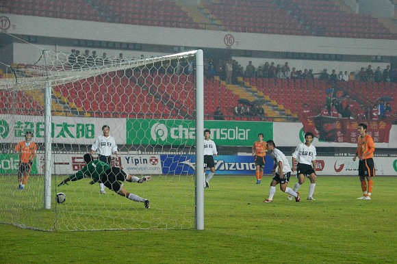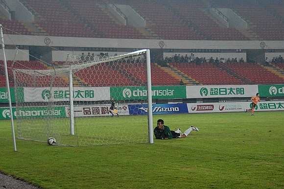 第73分鐘,上海東亞隊(duì)獲得了單刀機(jī)會(huì),呂文君中路直塞球交到了戰(zhàn)怡麟的腳下,后者甩掉兩名防守隊(duì)員后面對門將孫程,孫程提前出擊,戰(zhàn)怡麟?yún)s將球踢在了門將身上。