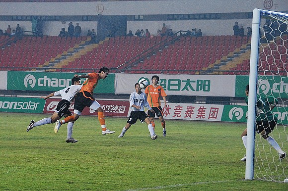 攻入對方一球之后,北京愛國者大學(xué)生隊(duì)繼續(xù)向?qū)Ψ酱箝T發(fā)動(dòng)猛攻。第16分鐘,楊思源在前場左路無人防守的情況下遠(yuǎn)射打高。處于被動(dòng)挨打的上海東亞隊(duì)只能依靠前場定位球騷擾對方大門。第22分鐘,王佳玉右路的角球開到點(diǎn)球點(diǎn)附近,門將孫程單拳將球擊出禁區(qū)。4分鐘后,上海東亞隊(duì)獲得了第一個(gè)前場任意球機(jī)會(huì),王佳玉右腳傳入禁區(qū),曹慧康在門前獅子甩頭,皮球高出橫梁。
