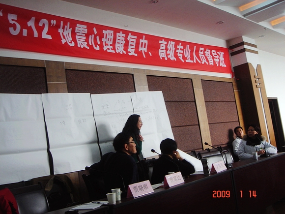 我校社會工作系主任、應(yīng)用心理學(xué)研究所所長賈曉明教授于2009年1月11日到16日再次到四川災(zāi)區(qū)進(jìn)行心理援助工作。此次四川之行,賈曉明教授與加拿大多倫多大學(xué)曾家達(dá)教授、香港朱燕明老師為四川5.12地震心理康復(fù)中、高級專業(yè)人員進(jìn)行個案督導(dǎo),答疑解惑,幫助心理專業(yè)人員提高對災(zāi)后心理創(chuàng)傷者的心理干預(yù)專業(yè)能力。