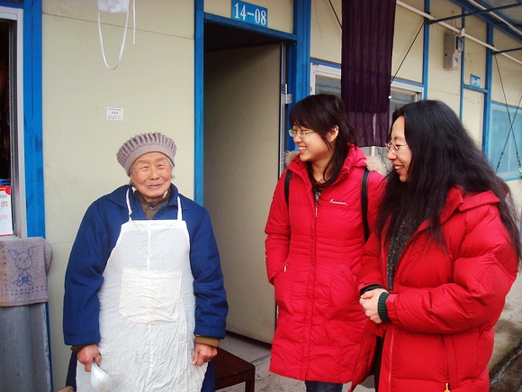 督導(dǎo)之外,賈曉明教授帶領(lǐng)發(fā)展與教育心理學(xué)研究生雷雨佳去四川什邡市的板房安置區(qū)與被安置居民交流,了解他們在板房區(qū)半年來的生活。春節(jié)即將來臨,這對喪失家園、痛失親人的安置居民是一個比較敏感的時(shí)期,但板房前掛起自家做的臘肉香腸也表明被安置居民強(qiáng)大的抗逆力和對未來生活的希望。