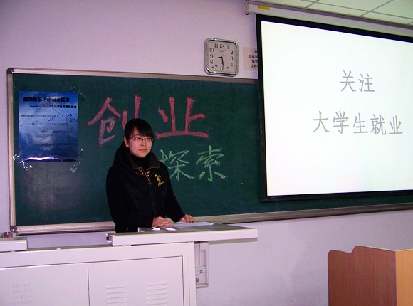 當晚到場觀看演講比賽的領導有人文與社會科學學院經濟系系主任趙瑾璐,經濟系胡星斗、馬秋君、劉建軍、賈利軍、梁媛、李常青、張亞彬、朱凱、陳秀梅等11位老師,演講比賽由經濟學專業團支部書記于滿同學主持并做了開場白,接下來是由12位同學分別登臺演講,大家針對金融危機下的創業問題各抒己見。