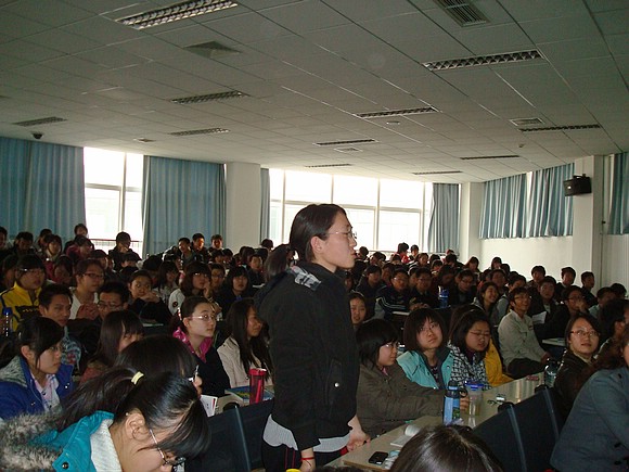 副書記、副院長仇芳老師針對就業指導方面進行了補充.要求同學們不要只盯著眼前書本的東西,要積極開闊眼界。廣泛參與社會實踐,努力培養學習能力,全面提高綜合素質。仇芳副書記還與在座同學進行了互動交流,同學們就各自關注的問題爭互提問,仇書記逐一進行解答。信息學部07級學生黃志鵬也被此次就業指導講座所吸引,認真聽取并與仇書記進行了互動交流。