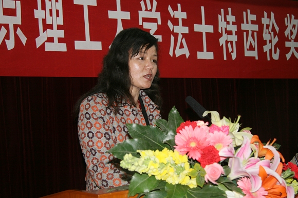 在頒獎典禮上,機械與車輛學院黨委書記張英教授代表學院致詞。張書記簡要介紹了學校及學院的基本情況,以及我校與陜西法士特齒輪有限責任公司在校企合作上的歷史,對陜西法士特齒輪有限責任公司對于我校教育事業(yè)做出的努力和貢獻表示感謝,并勉勵獲獎同學再接再厲,抓好學業(yè),抓好德育,心懷一顆感恩之心成為社會的棟梁人才。