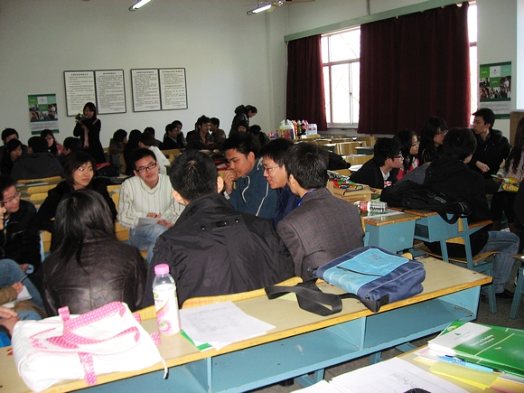 與GE冷靜的氣氛不同,MOTO的氣氛從一開始就是非常熱鬧的,一開始的破冰游戲讓同學們在有壓力的情況下去和不認識的同學打招呼,所以后來的小組討論氣氛非常熱烈也就在意料之中了。組長正穿梭在小組間為大家錄像。