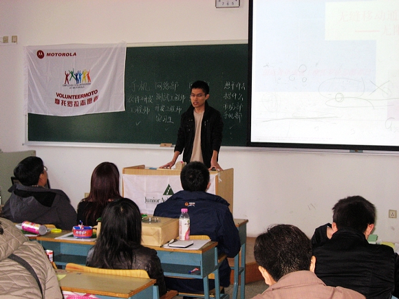 在北理工主要是以兩個事業啟航工作坊的形式開展的,有兩家公司從其內部招募志愿者,組成志愿者團隊來到北理工分別和同學們做一些關于事業啟航、人際等方面的經驗分享。這次來到北京理工大學的志愿者團隊是通用電氣和摩托羅拉兩家公司。21名志愿者在這個陽光明媚的下午為同學們呈現了兩場風格迥異但是同樣受益匪淺的講座。