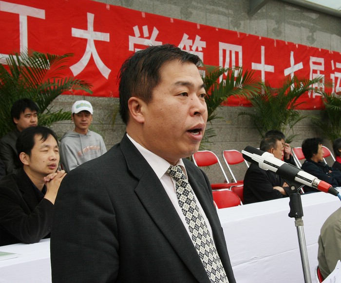 學(xué)校副校長(zhǎng)、運(yùn)動(dòng)會(huì)組委會(huì)組長(zhǎng)李和章為本次開(kāi)幕式致開(kāi)幕詞。李副校長(zhǎng)代表運(yùn)動(dòng)會(huì)組委會(huì)在總結(jié)我校2008年體育事業(yè)發(fā)展和成就的基礎(chǔ)上,強(qiáng)調(diào)今后我校將繼續(xù)堅(jiān)持把體育工作作為提高全校師生身心健康、全面推進(jìn)素質(zhì)教育的重要內(nèi)容,進(jìn)一步加強(qiáng)體育工作和體育教育;希望每位運(yùn)動(dòng)員發(fā)揚(yáng)更高、更快、更強(qiáng)的奧運(yùn)精神,安全、文明、規(guī)范參賽,以飽滿的熱情、昂揚(yáng)的斗志,拼出成績(jī)、賽出風(fēng)格;全體裁判員、工作人員要忠于職守,樹(shù)立安全第一、熱情服務(wù)、嚴(yán)守規(guī)則意識(shí),做到公正裁判、熱情服務(wù),為各項(xiàng)賽事創(chuàng)造良好條件,保障比賽順利進(jìn)行;要堅(jiān)持深入學(xué)習(xí)實(shí)踐科學(xué)發(fā)展觀,聚焦特色謀發(fā)展、激情進(jìn)取創(chuàng)一流,努力奮斗,喜迎建國(guó)60周年。最后,預(yù)祝本屆運(yùn)動(dòng)會(huì)圓滿成功!