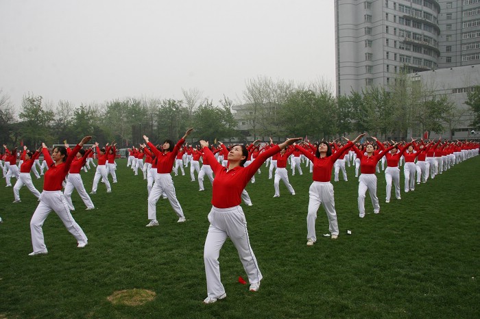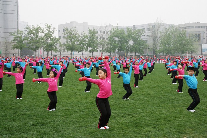 開(kāi)幕式團(tuán)體操表演精彩紛呈,將開(kāi)幕式推向了高潮:刀劍棍鞭、砍刺盤(pán)舞,輕如行云流水、矯似神龍掠空、勢(shì)若猛虎出柙,觀眾陶醉于武術(shù)表演中;“羅衫葉葉繡重重,金風(fēng)送鵝各一叢”,475名教職工表演的廣播體操成為綠茵場(chǎng)上的一大亮點(diǎn),整齊協(xié)調(diào)、舒展流暢的表演為運(yùn)動(dòng)會(huì)增添了熱烈、隆重的氣氛;伴隨著“七彩陽(yáng)光”的旋律,361張?zhí)煺婊顫姷男δ槼霈F(xiàn)在綠茵場(chǎng)上,跳躍靈動(dòng)的啞鈴操表演,舞出了孩子們天真爛漫的童心世界。