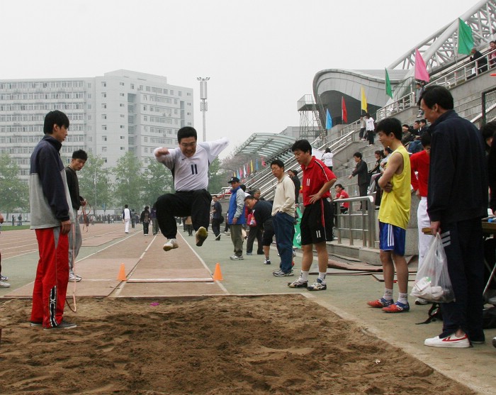 賽場(chǎng)上,運(yùn)動(dòng)健兒們精神抖擻,充分發(fā)揚(yáng)了頑強(qiáng)拼搏、積極進(jìn)取的體育精神,盡情地拋灑激情和汗水,揮舞青春和熱情。跳高場(chǎng)上,健兒們輕盈地飛越橫桿,裁判不斷調(diào)高高度;跳遠(yuǎn)場(chǎng)上,助跑、加速、騰空、跳躍,教職工健將們嫻熟的動(dòng)作,不斷地刷新著剛剛抹平的沙面;教工男子四百米接力賽競(jìng)爭(zhēng)激烈,紅色的跑道上,你追我趕,奮力向前;豐富多彩的趣味比賽中,大家切磋技巧,笑語(yǔ)不斷......