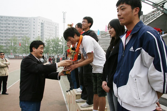 校黨委副書(shū)記趙平、副校長(zhǎng)趙顯利及學(xué)院和相關(guān)部門(mén)領(lǐng)導(dǎo)出席了閉幕式并為獲獎(jiǎng)單位頒獎(jiǎng)。趙顯利副校長(zhǎng)致閉幕詞,他指出,在本屆校運(yùn)會(huì)上運(yùn)動(dòng)員在比賽中團(tuán)結(jié)協(xié)作、頑強(qiáng)拼搏,賽出了成績(jī)、賽出了友誼,展現(xiàn)了良好的體育精神和靚麗的青春風(fēng)采,取得了比賽成績(jī)和精神文明的雙豐收,充分反映了我校體育事業(yè)蓬勃發(fā)展、教育教學(xué)水平不斷提高的良好態(tài)勢(shì);希望全校師生再接再厲,積極參加體育鍛煉、增強(qiáng)體質(zhì),豐富業(yè)余生活,活躍校園文化,提高生活質(zhì)量,以健康的體魄、充沛的精力、飽滿的熱情投入工作和學(xué)習(xí)中。