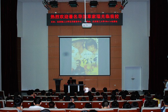 接近尾聲,章導(dǎo)贊美了理工大學(xué)良鄉(xiāng)校區(qū)的建設(shè),肯定了同學(xué)們?nèi)宋乃伎嫉纳疃龋膭钔瑢W(xué)們珍惜美好的大學(xué)時光,心懷感恩,勇于承擔(dān)歷史責(zé)任,并感謝大學(xué)生對其電影作品的支持。