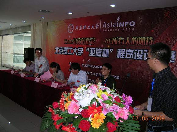 2009年5月17日,北京理工大學第三屆“亞信杯”程序設計大賽,在中關村校區和良鄉校區機房同時舉行。大賽共吸引了全校不同專業的250支隊伍571名學生參加。這次大賽由教務處主辦,基礎教育學院與軟件學院共同承辦,亞信科技(中國)有限公司提供贊助,計算機實驗教學中心為大賽提供了兩個校區的計算機上機環境,保證了大賽的順利進行。