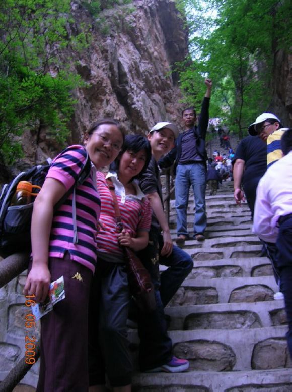 在石林峽自然風景區,同志們走在溪水旁,置身于天然大氧吧中,深吸著來自崇山峻嶺小草的芳香,人們說笑著,年輕的攙扶著年紀大的,走在前面的不斷回頭招呼著后面的伙伴,感覺無比的輕松,……。工會主席蔣本珊老師雖然腳傷還未痊愈,但是為了帶動同事們參加活動,她自己忍受著腳傷的痛苦和大家同行,因在山路上行走比較困難,青年教師李侃同志看到此情,主動陪伴著蔣老師甘當一個“小拐杖”,途中他從最陡峭的天梯上走下來,護送蔣老師返回集結地,李老師放棄了個人的游樂,表現出同志之間互相關心,互相愛護的精神。