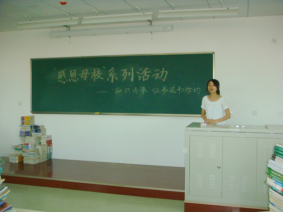 為了堅持全面協調可持續發展的基本要求,機電學院05級黨支部舉辦了“感恩母校”系列活動之“知識傳承”征書送書活動,將大四學生四年來所用的教材送給良鄉校區的同學。6月9日下午,在良鄉校區成功舉辦了交接儀式,機電學院07級輔導員徐瑩瑩老師,05級黨支部黨員以及07級的各班級干部參加了此次活動。