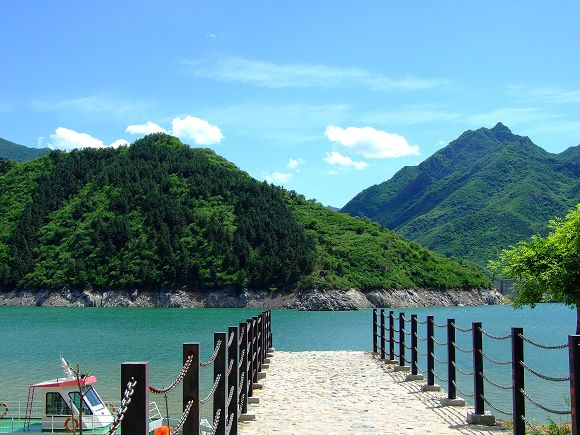 霧靈山處于北京市密云區(qū)新城子鎮(zhèn),座落在聞名遐爾的司馬臺長城,是離北京市最遠的一個村鎮(zhèn)。一進霧靈山,江總書記的題詞:“湖光山色,盡收眼底”赫然在目。廖廖數(shù)語,把這里的景象刻畫得淋漓盡致。這里自然環(huán)境優(yōu)美,人文環(huán)境健康和諧。霧靈湖岸依山傍水、氣候宜人,具有天然水碧、樹茂花香之山鄉(xiāng)美景,若在湖上游覽,大有“舟行碧波上,人在畫中游”的欲仙之感。